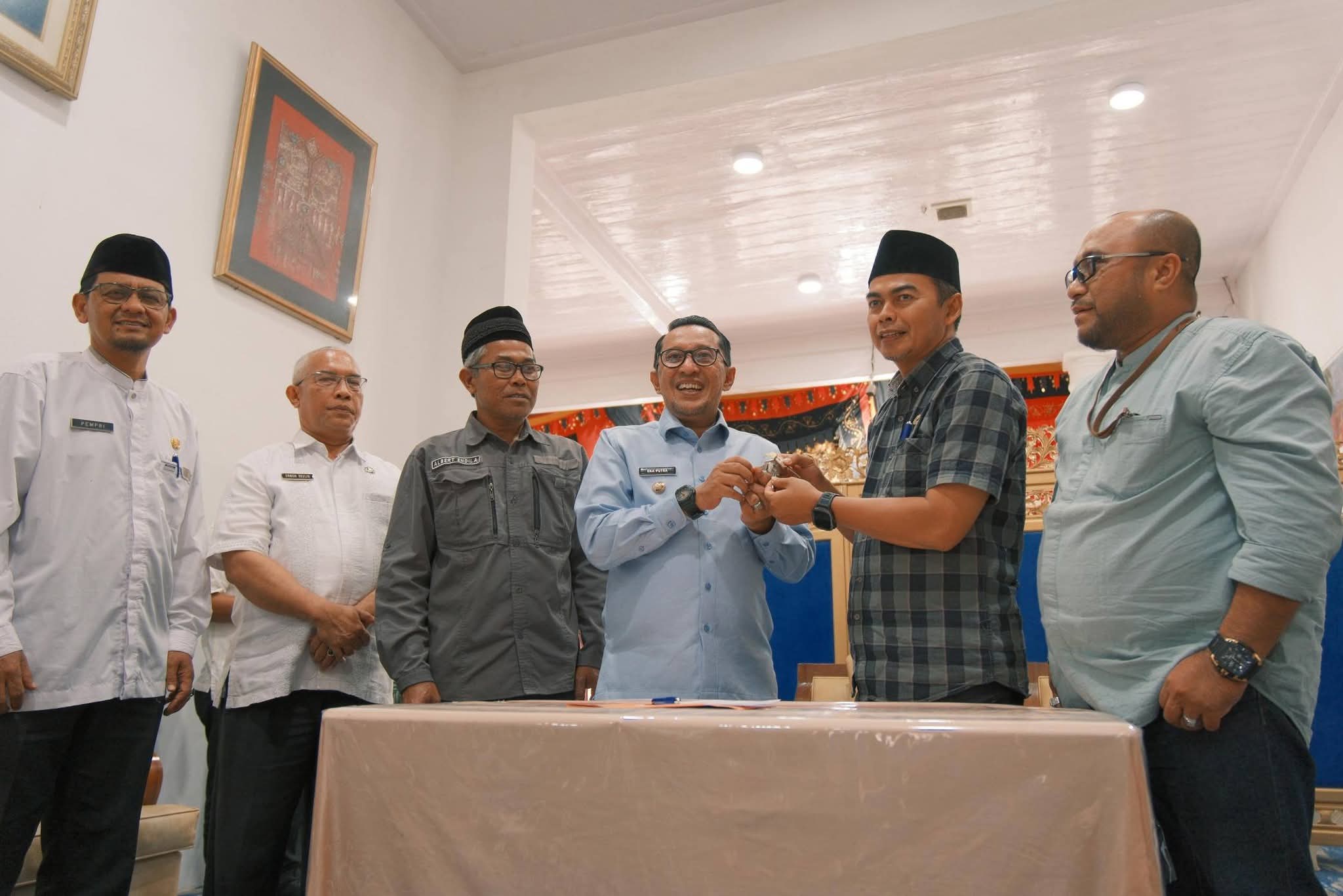 Penyerahan yang dilaksanakan di gedung Indojolito Batusangkar, Jumat (6/2/2026) tersebut juga disaksikan langsung oleh Asisten Ekobang Ten Feri, Site Operational Manager PT. Nindya Karya Hendra, Kalaksa BPBD Ermon Revlin, Kadis Sosial PPPA Hendra Setiawan, Kadis PUPR Mustika Suarman, Kadis Kominfo Dedi Tri Widono, Kadis LH Pempri, Kabag Hukum Audia Safitri, Camat Batipuh Selatan Ujang As’ad, Wali Nagari dan undangan lainnya.