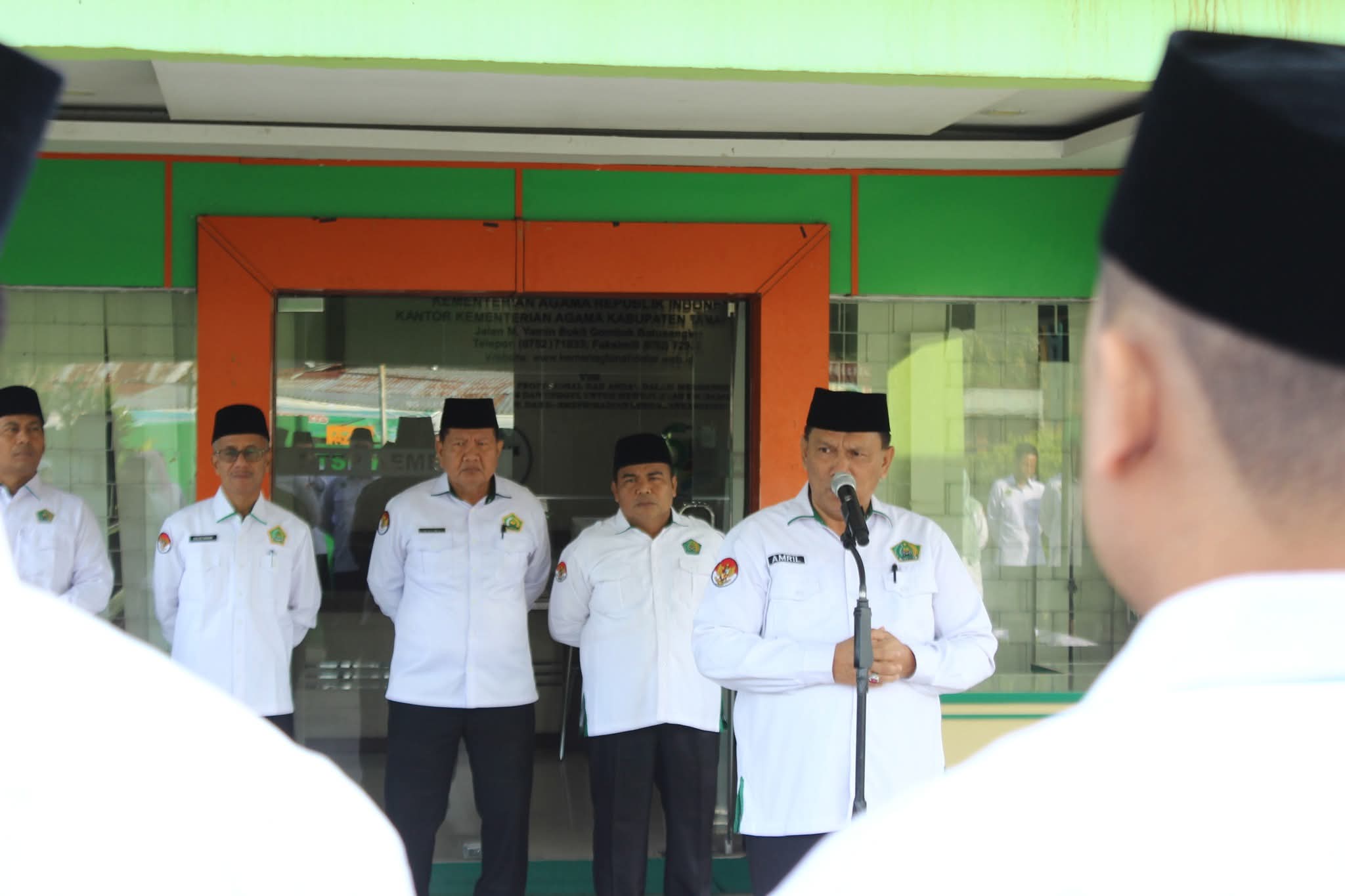 Dimana apel dipimpin langsung oleh Kepala Kantor, H. Amril, serta diikuti Kasubag TU, para Kepala Seksi, Pokjawas, dan seluruh ASN.