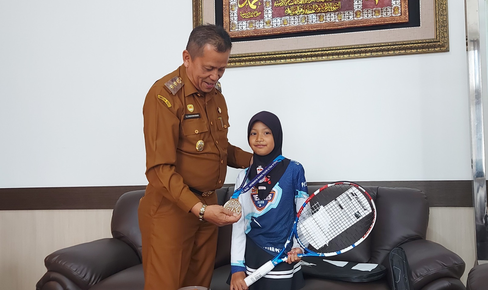 “Prestasi Hanijfa di Kejurnas adalah bukti bahwa anak muda kita punya kualitas nasional. Pemberian raket ini adalah bentuk dukungan spontan saya, agar Hanijfa semakin giat berlatih dan tidak cepat puas dengan apa yang diraih hari ini,” ujar Elzadaswarman di ruang kerjanya.