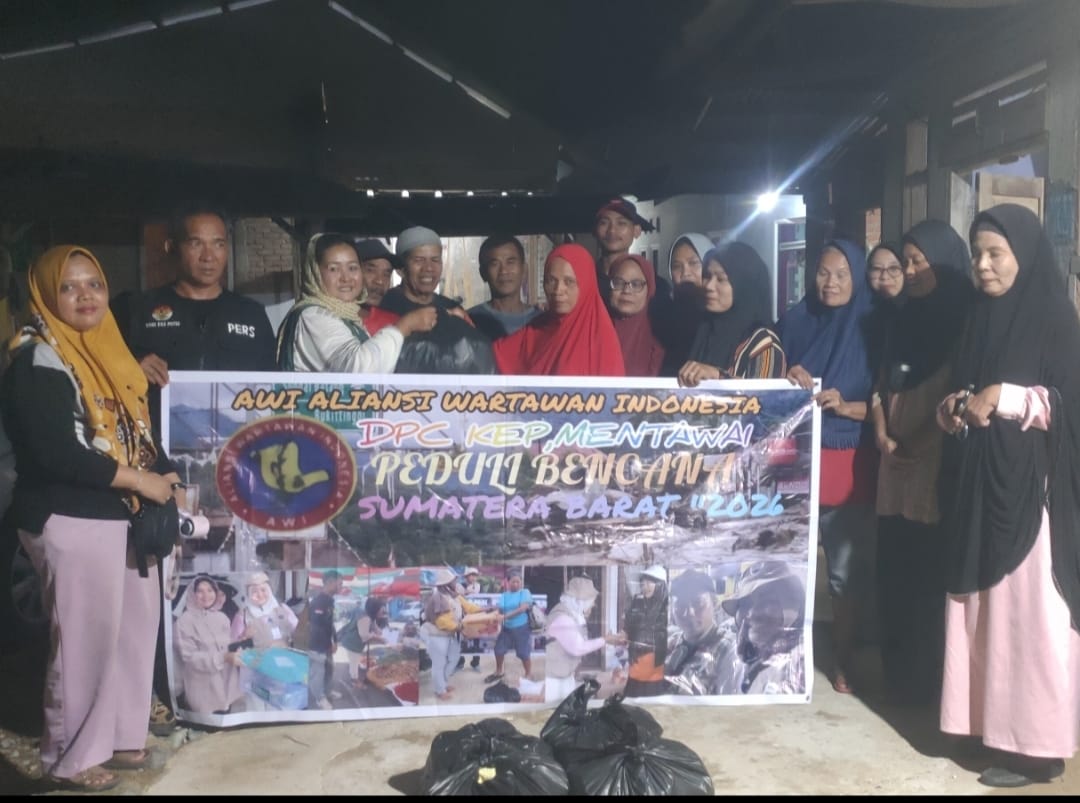 –13/02/2026 Aliansi Wartawan Indonesia (AWI) DPC Kabupaten Kepulauan Mentawai kembali menunjukkan kepeduliannya terhadap masyarakat terdampak bencana dengan menyalurkan bantuan sembako kepada korban banjir di Kelurahan Guo, Kecamatan Kuranji, Kota Padang, Sumatera Barat.