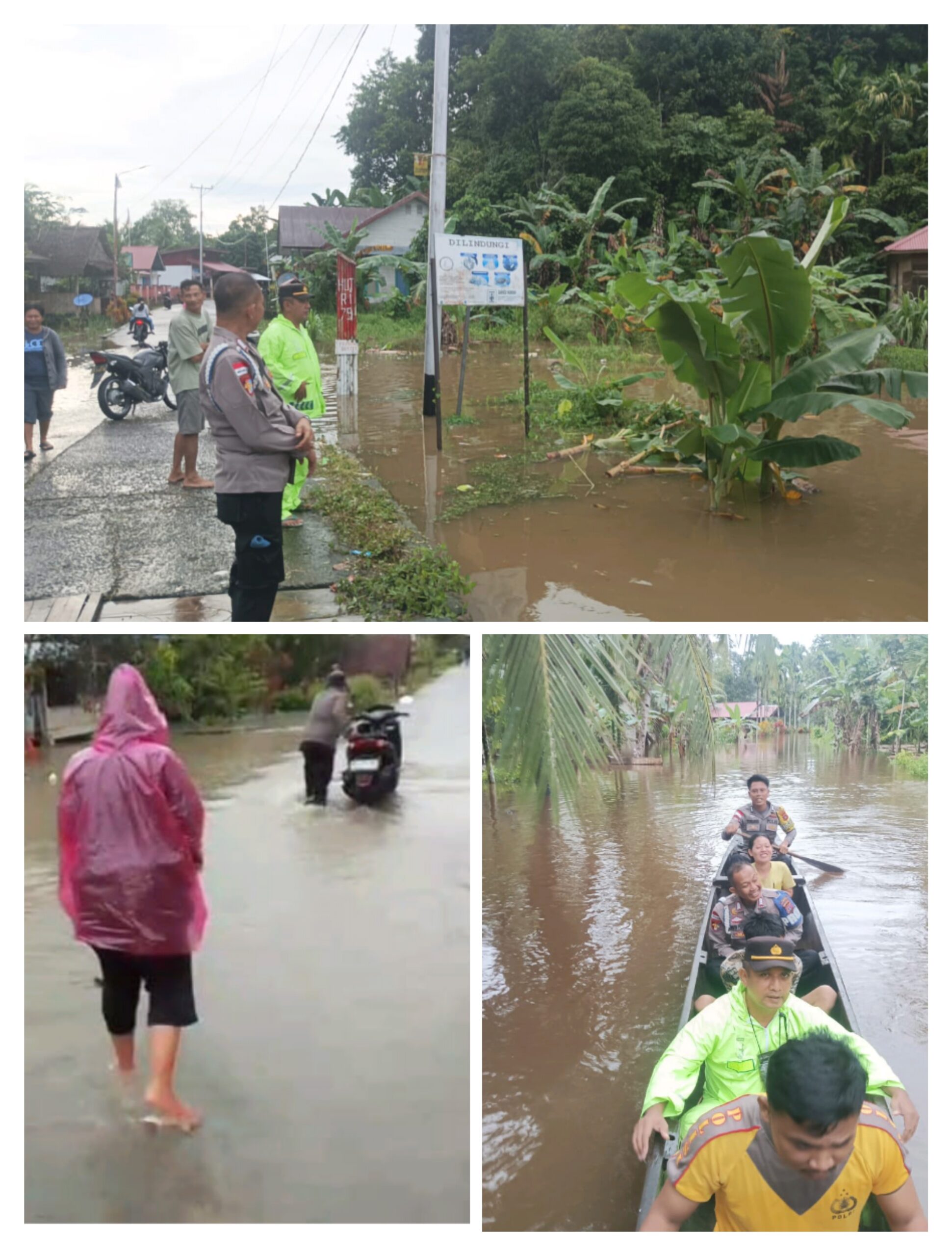 “Saat ini, air masih tergenang sekitar 1 meter dan cuaca masih hujan gerimis. Kami telah melakukan monitoring dan membantu warga yang terdampak banjir,” ujar AKP Yahya Novi Sutriana, S.H.