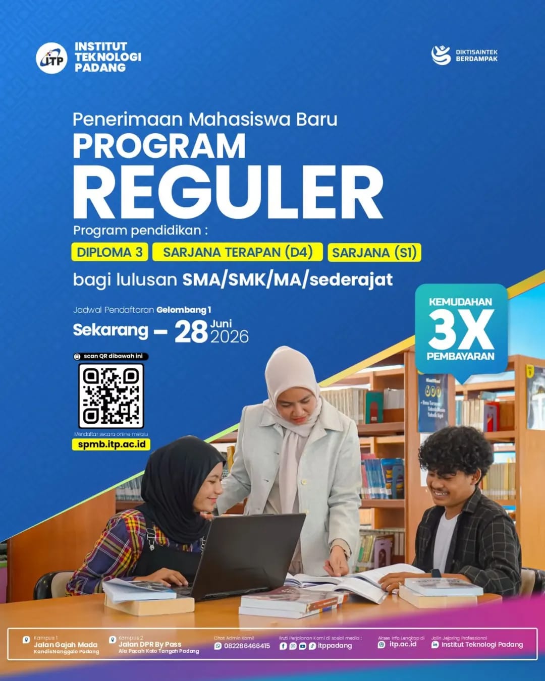 SPMB Gelombang 1 di Institut Teknologi Padang telah dibuka dan berlangsung hingga 28 Juni 2026, dengan batas akhir pendaftaran ulang pada 15 Juli 2026. Momentum ini menjadi kesempatan strategis bagi kamu yang ingin tetap melanjutkan pendidikan tinggi di bidang teknik dengan kualitas pendidikan yang terarah dan aplikatif.