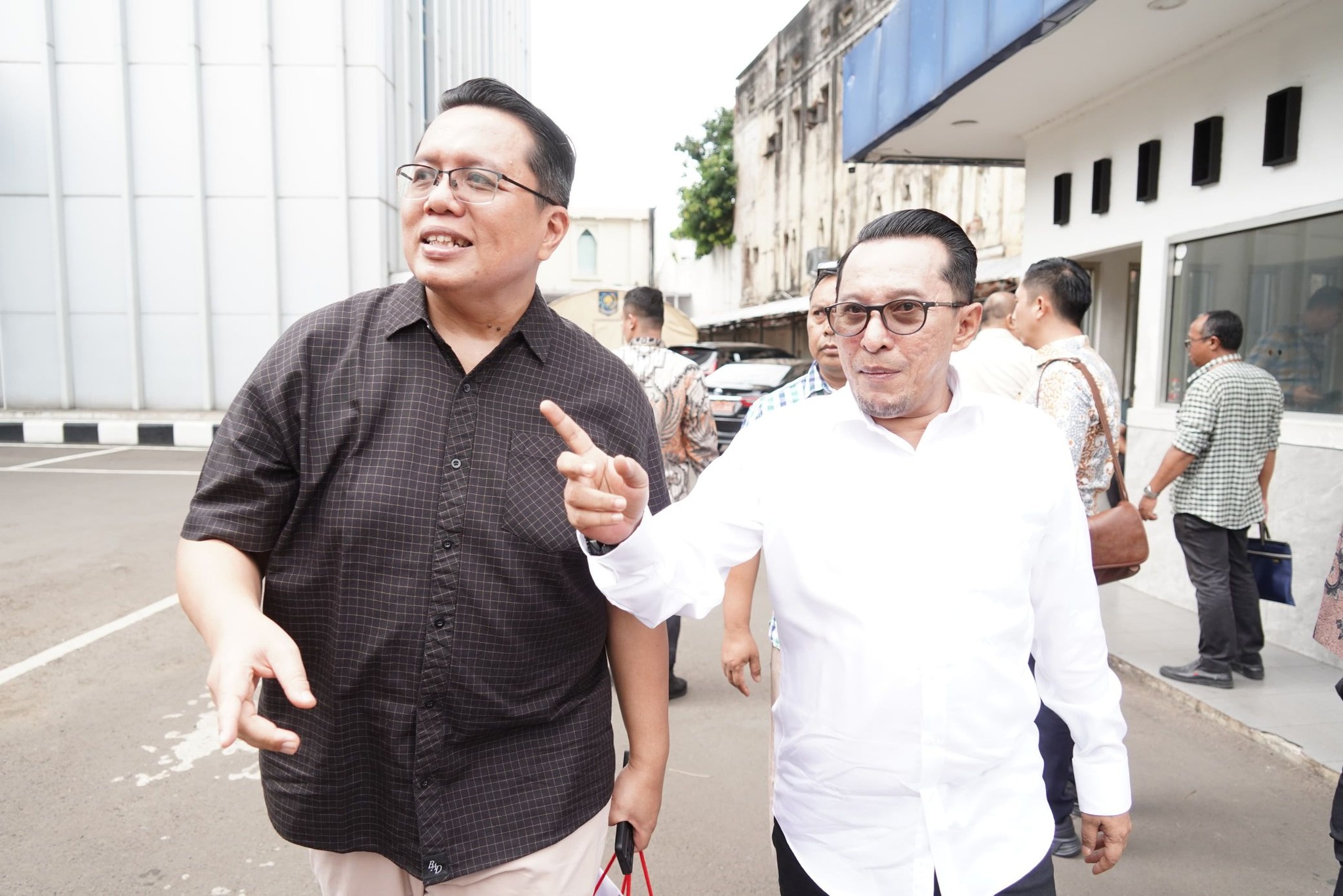 Berkemeja putih Bupati terpilih Eka Putra dan Wakil Bupati terpilih Ahmad Fadly berkemeja kotak-kotak hitam memasuki Gedung Kemendagri, dimana pada hari ini ada tiga sesi pemeriksaan kesehatan.