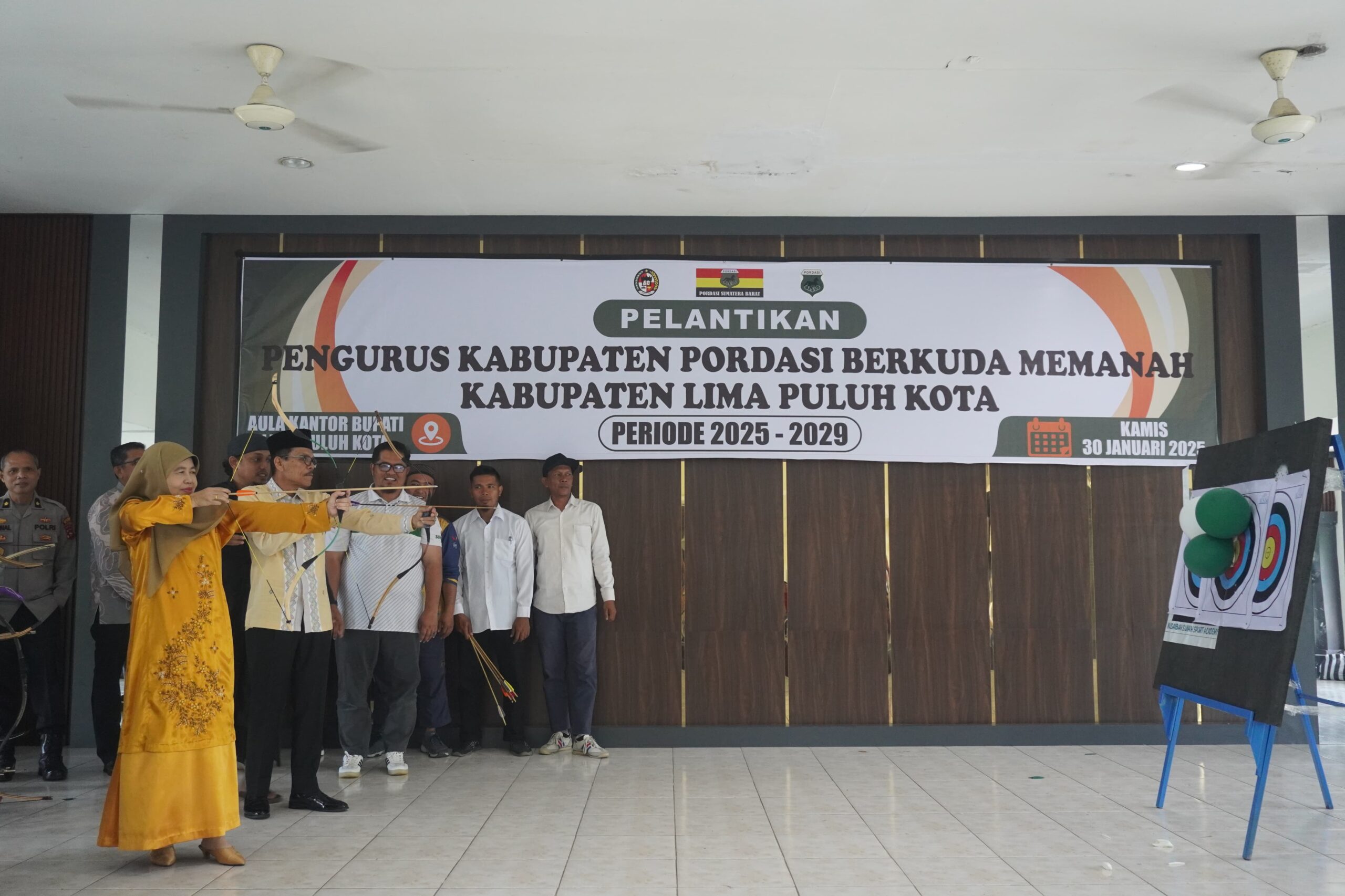 Lima Puluh Kota — Bupati Lima Puluh Kota, Safaruddin Dt.Bandaro Rajo menyambut baik dan mengapresiasi terbentuknya kepengurusan baru PORDASI Cabang Berkuda Memanah Kabupaten Lima Puluh Kota. “Olahraga berkuda memanah merupakan olahraga yang memiliki nilai historis tinggi dan mencerminkan warisan budaya leluhur kita. Di masa lalu, keterampilan berkuda dan memanah merupakan kemampuan yang wajib dikuasai oleh para kesatria dan prajurit,” ucap Bupati Safaruddin, Kamis, (30/01/2025) sesaat setelah menyaksikan pelantikan pengurus Persatuan Olahraga Berkuda Seluruh Indonesia (Pordasi) cabang Berkuda Memanah Kabupaten Lima Puluh Kota. Dilantik oleh Ketua Umum Pordasi Berkuda Memanah (PBM) Provinsi Sumbar, Dodi Arestu dipercaya menjadi ketua PBM Lima Puluh Kota untuk masa bakti 2025-2029.