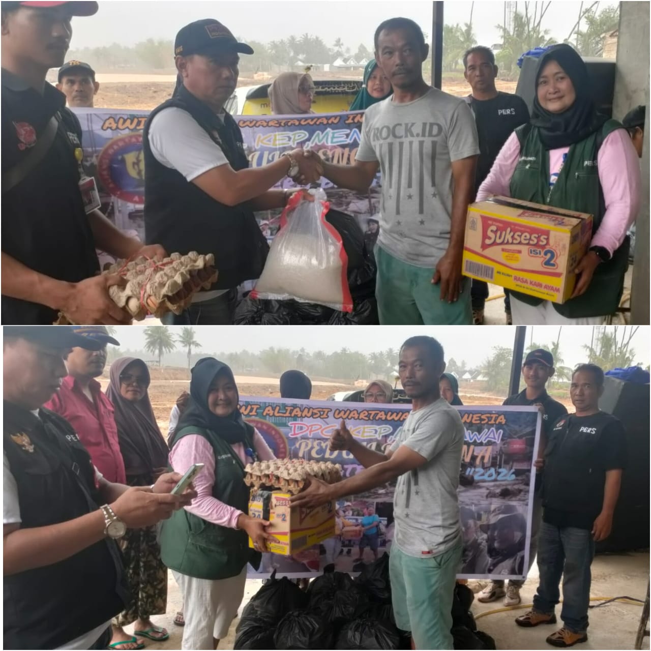 – Ketua Aliansi Wartawan Indonesia (AWI) DPC Kabupaten Mentawai, Faisal Ryanggie Fermana (Fais), bersama anggota Gusnidawati (Ami) dan Gempri, didampingi petugas Dinas Sosial Kota Padang Eko Gyono, menyalurkan bantuan tahap IV kepada korban banjir di Tabing Banda Gadang, Perumahan Griya Permata 2, Kecamatan Nanggalo senin.16/02/2026