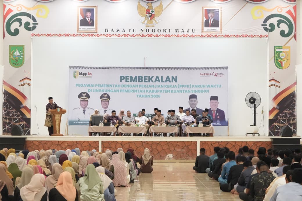 Penegasan tersebut disampaikan saat memberikan pembekalan kepada ratusan PPPK, termasuk PPPK paruh waktu yang akan digeser penugasannya ke desa, Jumat (24/4/2026) di Gedung Abdoer Rauf, Teluk Kuantan.