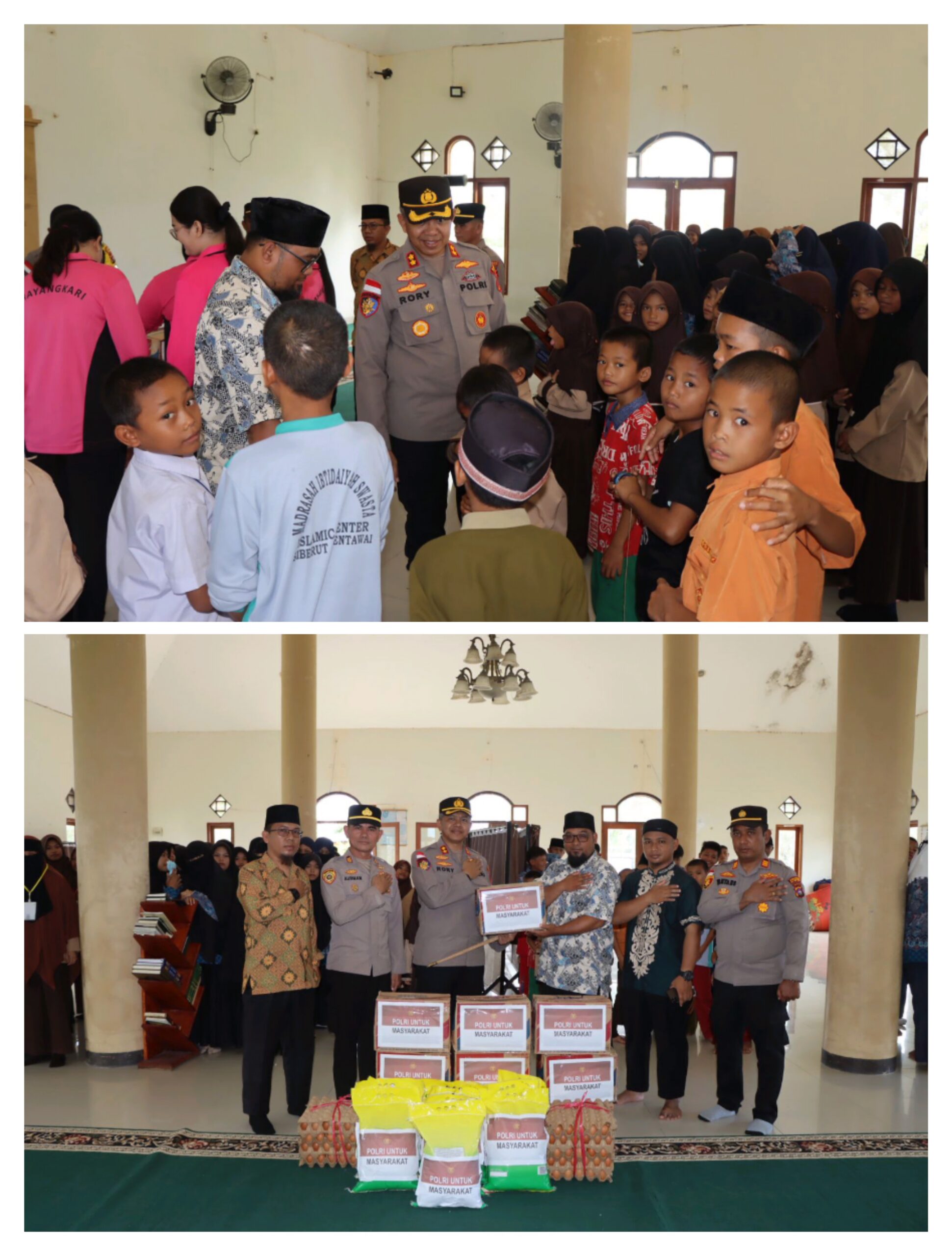 4 Desember 2025 – Kapolres Kepulauan Mentawai, AKBP Rory Ratno A., S.E., M.M., M.Tr.Opsla, bersama Kabag SDM, Kasi Propam, Kapolsek Siberut, dan jajaran Polsek Siberut, memberikan bantuan sembako kepada masyarakat yang terdampak banjir, terutama siswa-siswi Islamic Center.