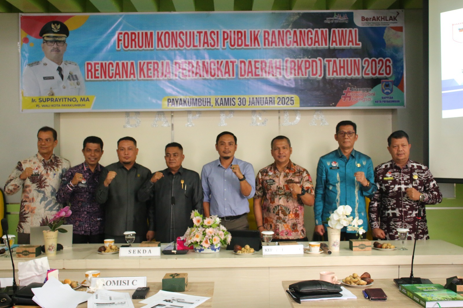 Payakumbuh – Pemerintah Kota Payakumbuh menggelar Forum Konsultasi Publik (FKP) Rencana Kerja Pemerintah Daerah (RKPD) tahun 2026 di Aula Badan Perencanaan Pembangunan Daerah (Bappeda) setempat, Kamis (30/01/2025).