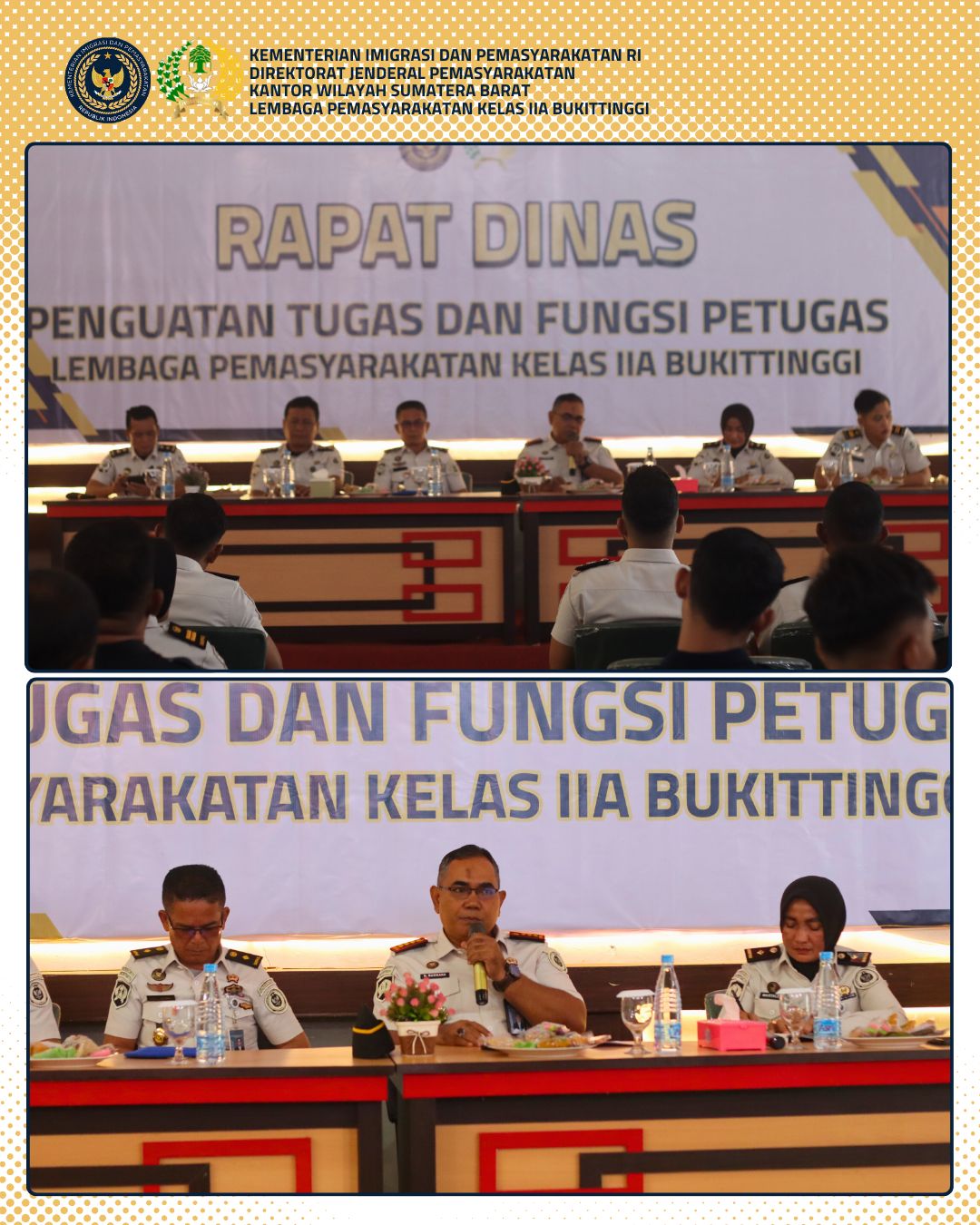 — Lembaga Pemasyarakatan (Lapas) Kelas IIA Bukittinggi melaksanakan Rapat Dinas bersama seluruh petugas pada Senin, 26 Januari 2026. Kegiatan berlangsung di Aula Lapas Kelas IIA Bukittinggi dan diikuti oleh seluruh jajaran pegawai.