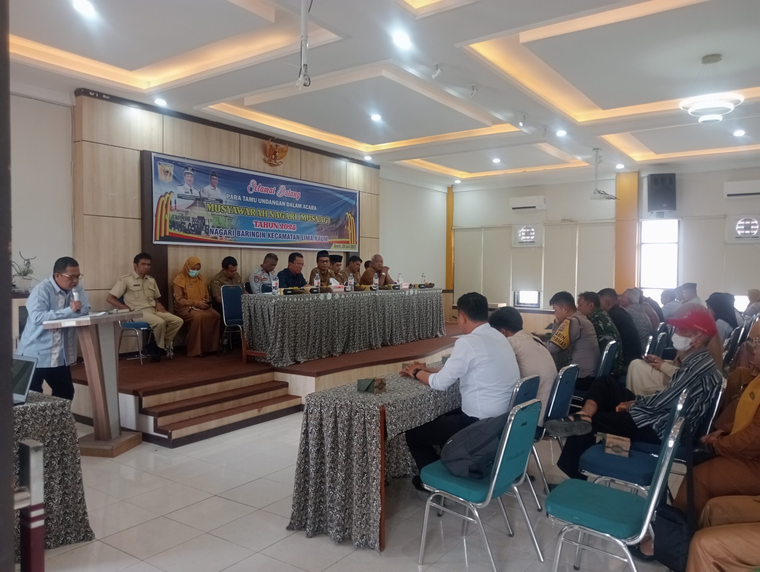 Musyawarah Nagari (Musnag) Baringin berlangsung Senen (28/07/2025) di aula kantor tersebut dengan kegiatan berdiskusi menampung dan memecahkan kebutuhan yang ada di Jorong Nagari Baringin Kecamatan Limakaum Tanah Datar.