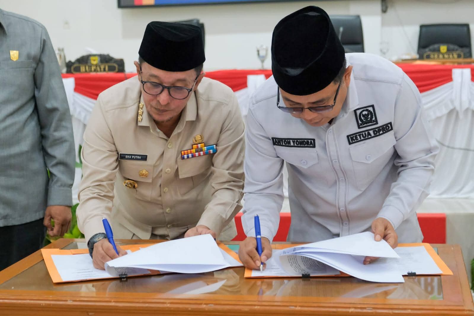 Bupati Eka Putra menyampaikan terima kasih kepada Ketua dan Wakil Ketua DPRD, ketua fraksi, dan pihak terkait lainnya sehingga KUA PPAS Perubahan Tahun 2025 disepakati dan ditandatangani bersama.