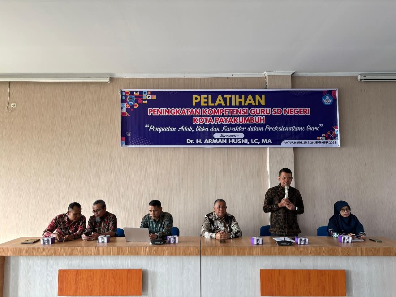 Payakumbuh — Dinas Pendidikan Kota Payakumbuh menyelenggarakan Pelatihan Peningkatan Kompetensi Guru dengan tema “Mengembalikan Marwah Guru, Menanamkan Karakter Mulia”. Kegiatan yang berlangsung di Aula Dinas Pendidikan Kota Payakumbuh ini dilaksanakan dalam dua gelombang, yakni Kamis (11/9/2025) serta Senin–Selasa (25–26/11/2025).