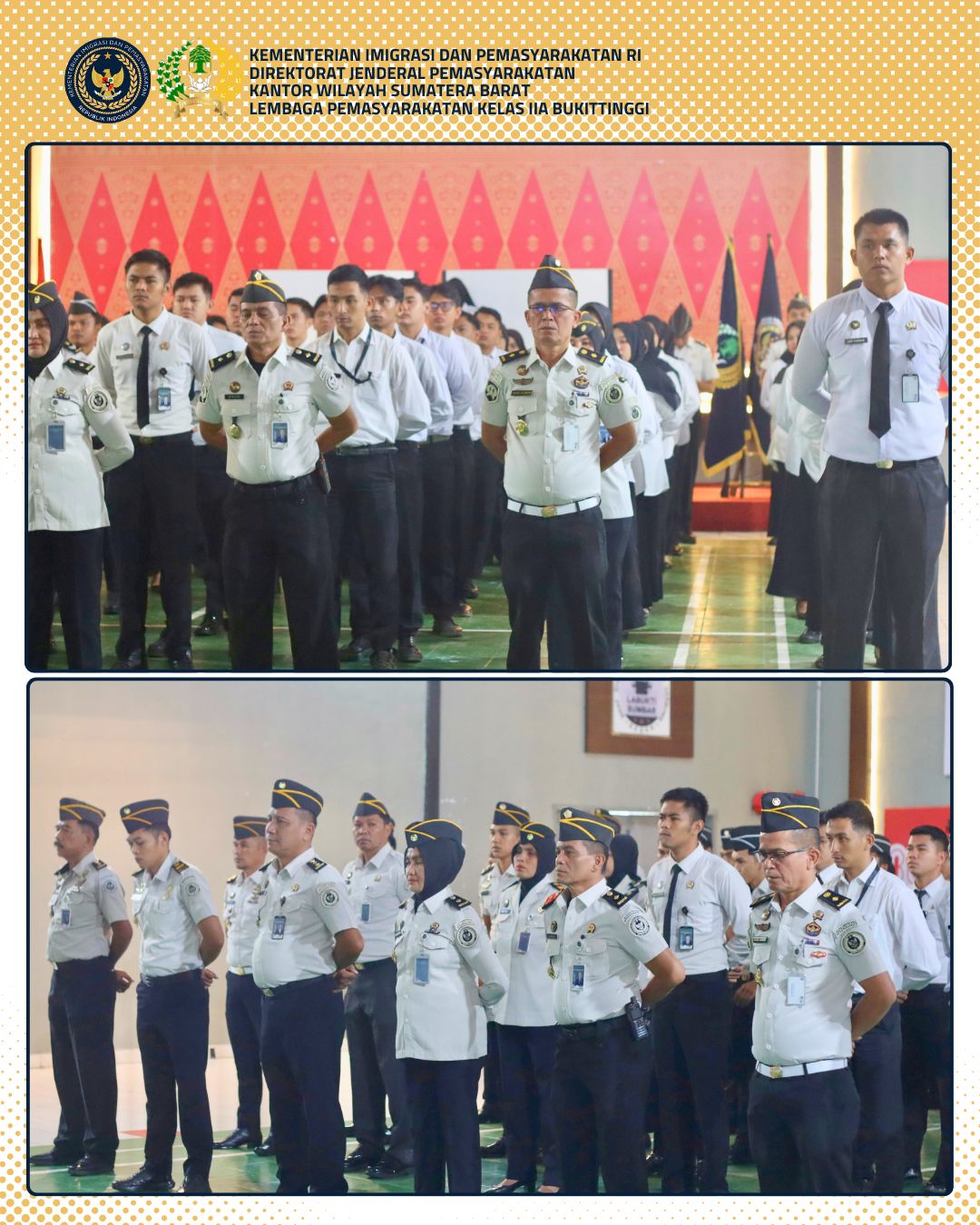 – Lembaga Pemasyarakatan (Lapas) Kelas II A Bukittinggi mengikuti apel pagi bersama secara virtual di Aula Lapas Bukittinggi yang diselenggarakan di lingkungan Kementerian Koordinator Bidang Hukum, Hak Asasi Manusia, Imigrasi, dan Pemasyarakatan Republik Indonesia melalui aplikasi Zoom Meeting, Senin (12/01).