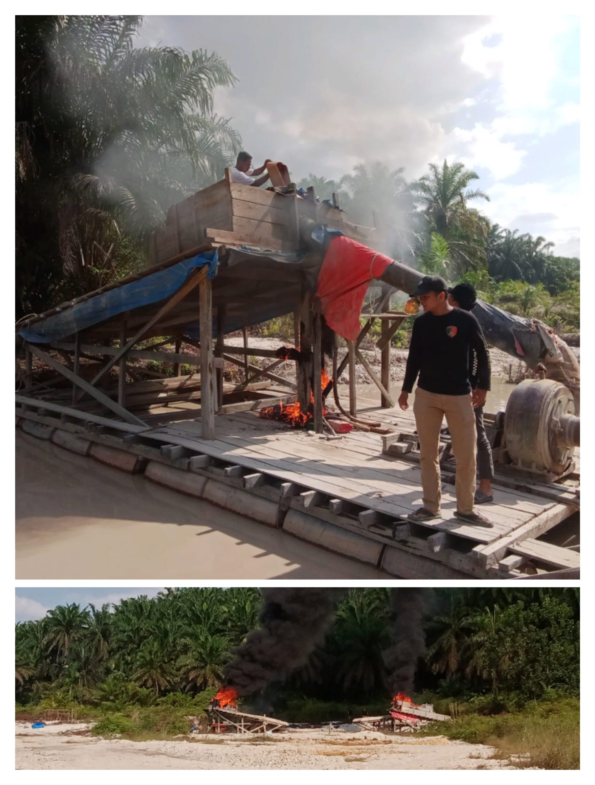 Setibanya di lokasi sekitar pukul 14.30 WIB, petugas menemukan sebanyak tujuh unit rakit PETI darat yang berada dalam kondisi tidak beroperasi. Tanpa kehadiran pelaku di tempat kejadian, petugas langsung mengambil tindakan tegas dengan melakukan pemusnahan terhadap seluruh rakit tersebut. Pemusnahan dilakukan dengan cara dirusak dan dibakar di lokasi agar tidak dapat digunakan kembali untuk aktivitas ilegal.