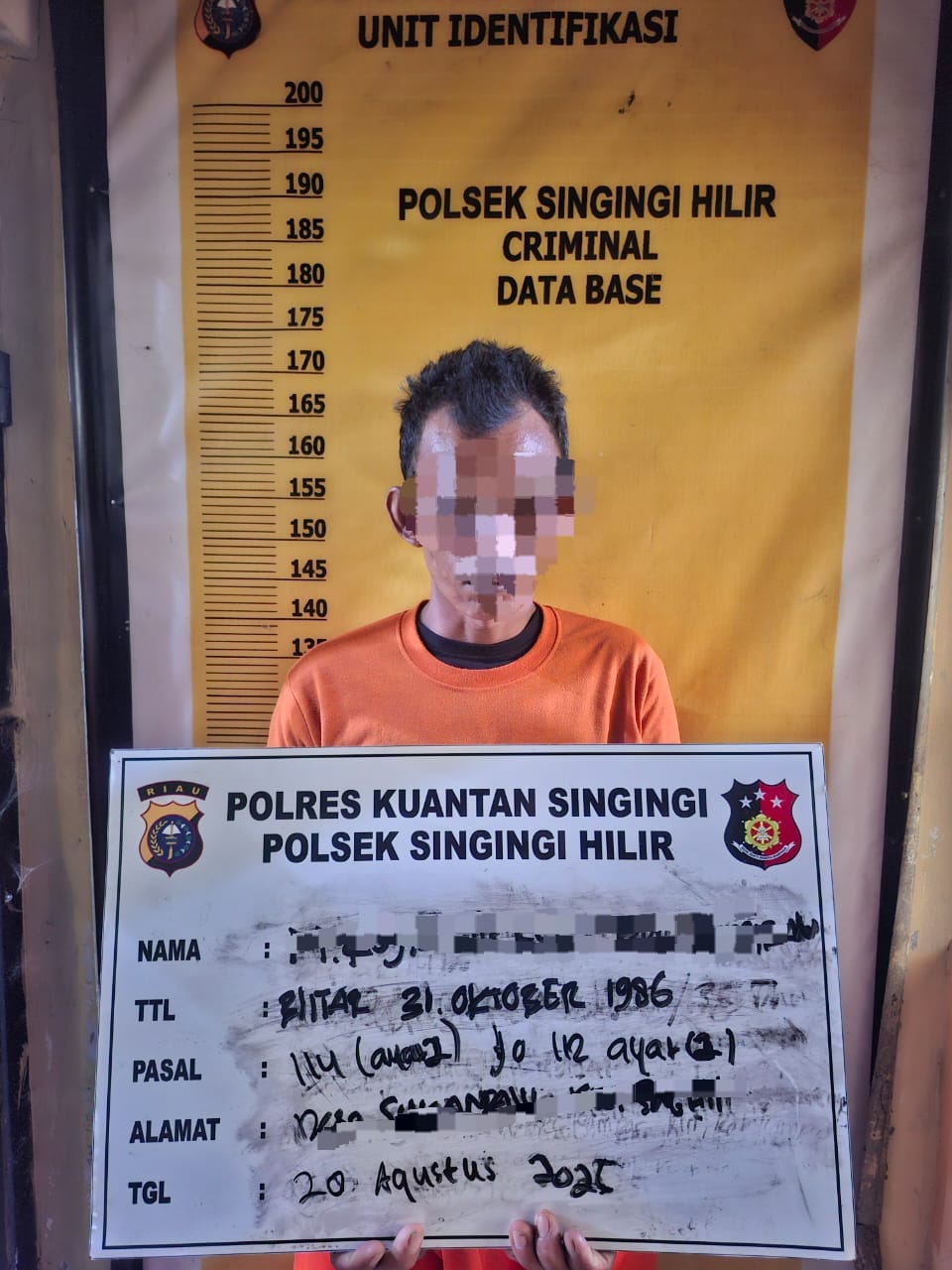 Kapolres Kuantan Singingi AKBP R. Ricky Pratidiningrat, S.I.K., M.H., melalui Kapolsek Singingi Hilir IPTU Alfredo Krisnata Kaban, S.H., menjelaskan, pengungkapan ini berawal dari penangkapan seorang laki-laki berinisal ER(36) di Desa Bukit Raya pada pukul 16.30 WIB. Dari tangan ER(36), polisi menemukan dua plastik bening berisi sabu dengan berat kotor 0,33 gram yang disembunyikan di dalam kotak rokok.
