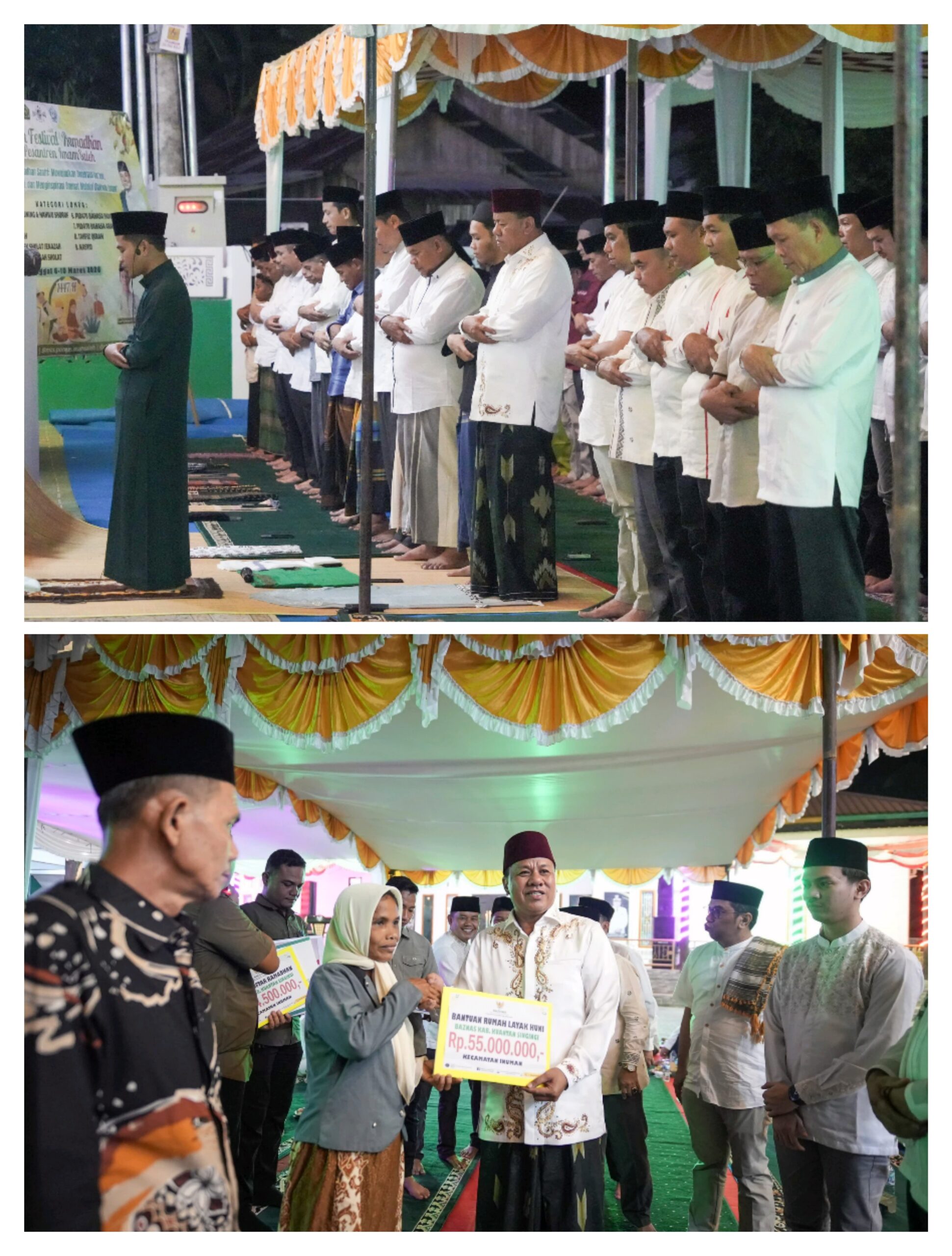 Pada kesempatan itu juga diserahkan berbagai bantuan kepada masyarakat, di antaranya program Rumah Layak Huni dari Baznas, santunan anak yatim dari PT RAPP, serta bantuan untuk Pondok Pesantren Imam Saleh dan masyarakat Kecamatan Inuman.