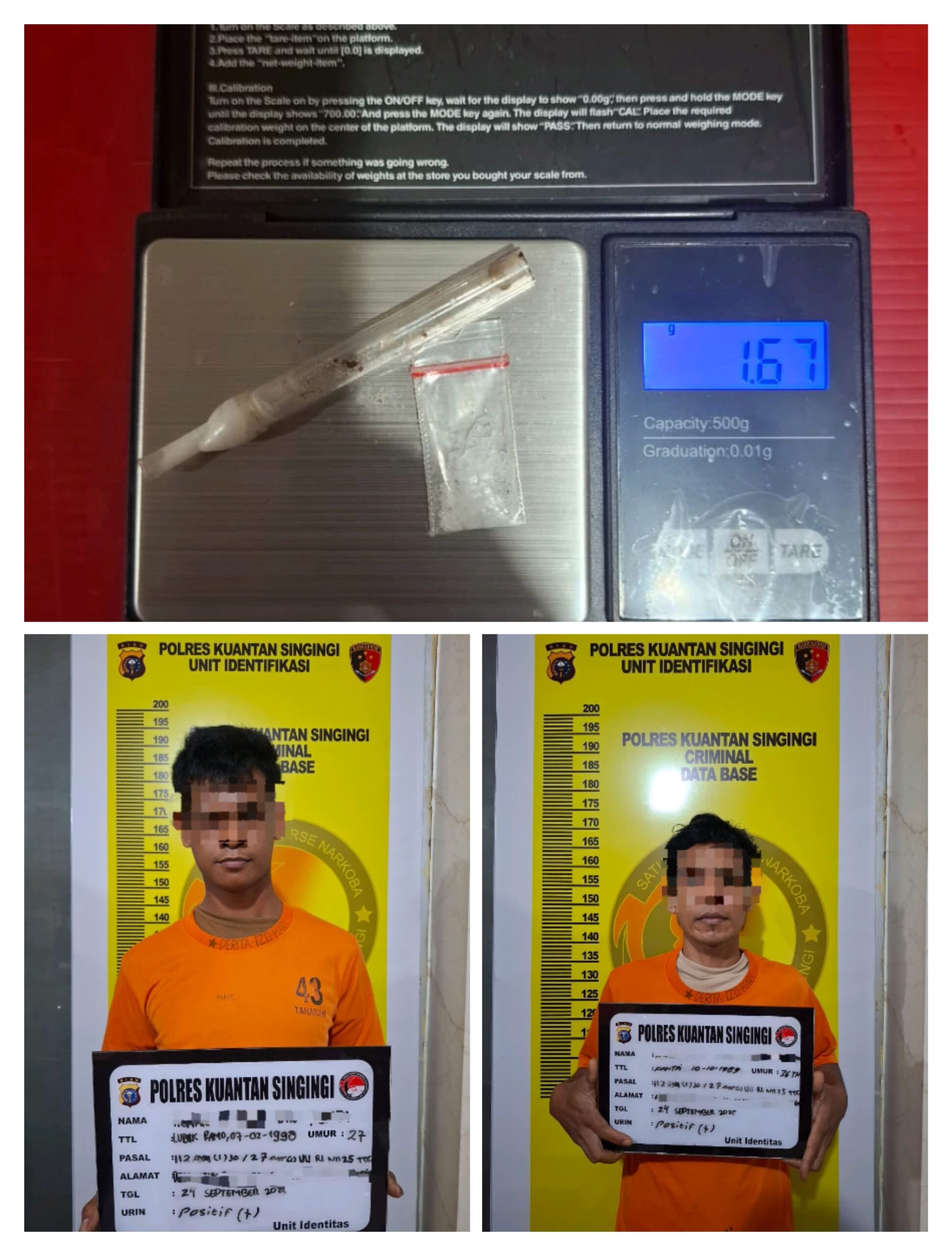 Hasil pemeriksaan urine menunjukkan bahwa kedua tersangka, AA(36) dan I(27), positif mengandung amphetamine. Keduanya berperan sebagai pengguna dan saat ini telah diamankan di Mapolres Kuantan Singingi untuk menjalani proses hukum lebih lanjut.