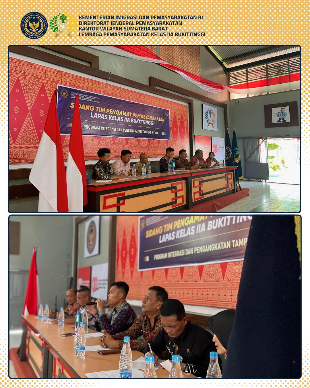 31 Oktober 2025 – Tim Pengamat Pemasyarakatan (TPP) Lembaga Pemasyarakatan Kelas IIA Bukittinggi melaksanakan Sidang TPP dengan agenda pembahasan usulan integrasi dan penempatan tamping kerja bagi warga binaan, bertempat di Aula Lapas Bukittinggi, Jumat (31/10).