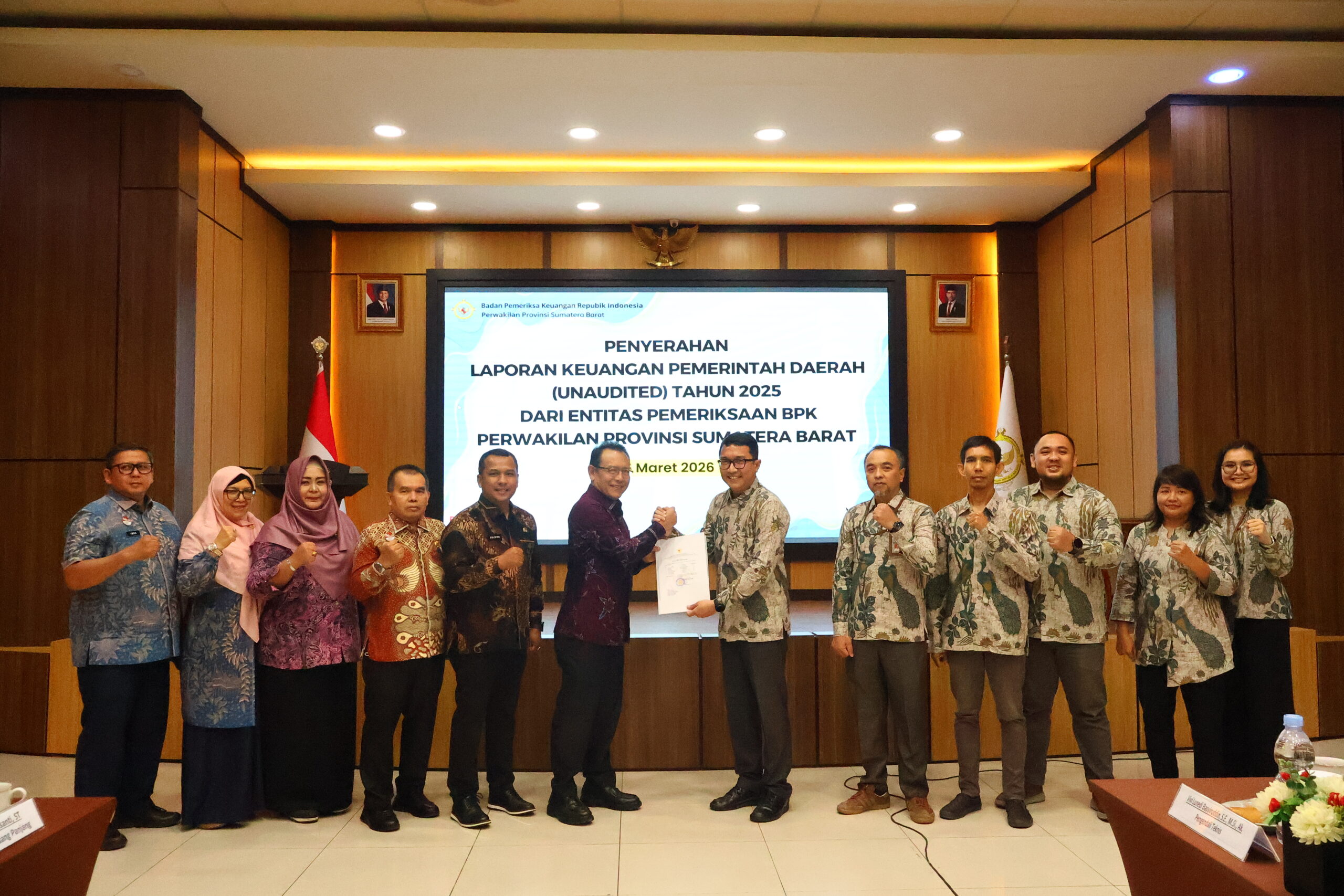 Payakumbuh — Wali Kota Payakumbuh, Zulmaeta menyerahkan Laporan Keuangan Pemerintah Daerah (LKPD) unaudited Tahun Anggaran 2025 kepada Badan Pemeriksa Keuangan (BPK) Perwakilan Provinsi Sumatera Barat di Padang, Kamis (26/03/2026).
